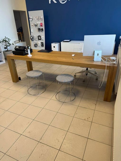 Ąžuolo masyvo darbo stalas 2500x800 mm. Stalą galime pagaminti pagal Jūsų pateiktus matmenis, stalviršio bei kojų spalvas.